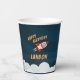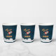 Designed to match our Blast Off birthday party invitations and accessories, these cool personalized outer space themed paper cups feature a dark night sky background with a red and white rocket ship and cool orange lettering. "Happy Birthday" appears across the top of the ship, with the birthday child'a name beneath.