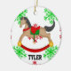 Rocking Horse Christmas Ornament with a red and green snowflake background.