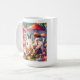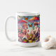 Cute, personalized coffee mug for a couple. Add couple's names in the personalize area. Anime boy and girl sitting in a batch of vintage mushrooms and flowers with butterflies flying in the background. Romantic keepsake gift for Valentine's Day or an anniversary or just to say I love you.