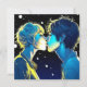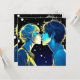 Personalized anime girl and boy romantic moment kissing in front of the stars. Valentine's Day card.