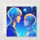Personalized anime blonde girl and boy romantic moment kissing in front of the stars. Valentine's Day card.