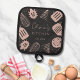 Introducing our Personalized Rose Gold Glitter Cooking Tools Pot Holder. Featuring faux blush pink glitter, kitchen utensils. and customable texts on black background. Suitable for chef, home cook, and cooking enthusiasts.