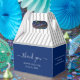 Looking for personalized favour boxes for your next party, shower, or wedding reception? These royal blue favour boxes are simple and elegant and will compliment any wedding theme. Personalize wedding favour boxes with the couple's name, wedding date, and a special quote or saying on the side. Custom wedding favour containers, boxes, can hold candies or a small gift for guests. These can also be used for wedding cake slice boxes to send home with your guest. Give a small gift or favour to say "thank you for coming"