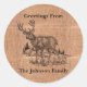 Personalized Rustic Burlap And Deer Illustration Classic Round Sticker