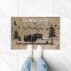 This rustic doormat makes the perfect gift for your fifth wheel travel trailer. The words at the top can be personalized to whatever you want. Some examples are "happy campers" or "welcome to our home" or whatever you want. On the bottom you can add your own name or put whatever you want as well. The doormat features birds flying over mountains with the moon and stars in the background and a campfire in the foreground.