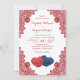 Elegant personalized navy blue and red wedding invitations featuring floral hearts and rustic lace. Easily personalize these navy blue and red wedding invitations with your wedding details and create a unique wedding card to complement your rustic wedding party. For matching items, please contact us via Zazzle chat.