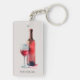 Personalized Rustic Watercolor Red Wine Glass Keychain.