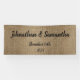 Create a warm and inviting atmosphere at your celebration with this personalized rustic wedding banner, featuring a beautiful burlap-inspired texture and nature pattern. Designed in soft, earthy tones, it’s perfect for country chic, farmhouse, boho, vintage, and barn-style weddings.