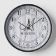 A rustic modern wood monogrammed script family name wood frame clock. You may choose from natural wood, white or black frame.