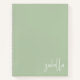 This modern minimalist notebook features your name in a white handwritten script calligraphy on a sage green background. The typography is stylishly placed in the lower right corner. Perfect for office, dorm, back to school, or business.
