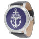 Personalized Sailorman Name Navy Anchor White Text Watch