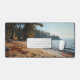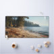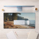 Bring the quiet beauty of this sandy beach into your workspace with this exquisite desk mat. Personalize it with a name printed on the lower right corner. This mat features a view of a beach with rocks and sea shells with trees lining the background and gentle waves rolling in with the sea breeze with a high-quality print from a high definition graphic. It provides a smooth and comfortable surface for your work for your laptop, keyboard and mouse. It can also transform your workbench with a stylish and elegant touch. Perfectly suited for all creators, artists, writers and anyone inspired.