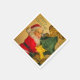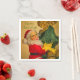 These charming, vintage-inspired Christmas paper napkins feature Santa Claus climbing a Christmas tree decorated with golden bells and a golden bow at the top. They offer a holiday wish customization option, currently displaying "Merry Christmas!" in classic red, green, and gold colours, perfect for holiday parties, Christmas gatherings, or everyday seasonal use at home.