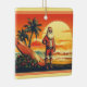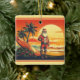 Personalized Santa Surfing Retro Beach Christmas Ceramic Ornament