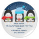 Three cute little penguins holding Christmas cookies out in the snow. Personalized with your custom message and signed with your children's names. A special plate for honouring a beloved family tradition - leaving cookies for Santa!