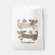 A pattern of cute little sausage dogs happily running along with a heart balloon tied to their tails.