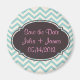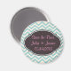 Custom save the date magnets. Vintage antique chevron pattern in blue and pink text perfect for any occasion. See the whole collection on wedding invitations, bridal shower invitations, thank you cards and more.