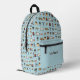 Colourful design with icons related to school. Great for kids starting school to get them excited about learning. Icons include backpacks, books, Erlenmeyer flasks, pencils, crayons, globe, scissors, buses, and microscopes. Blue background. Personalize front pocket with child's name.