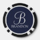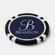 features personalized monogram in white classic script font style and name in white classic serif font style on navy blue background.
