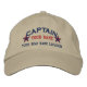 A personalized nautical stars captain embroidery design on a fine casual embroidered baseball cap. A one of a kind fashion statement sure to make an impression on, or off the boat.