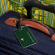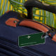 A stylish item with a graphic image of a plane and custom initials and name... to identify your belongings