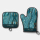Personalized Sequin Teal Blue Agate Oven Mitt & Pot Holder Set