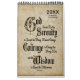 12-month Calendar: Cover features the well-known “Serenity Prayer” often associated with Recovery. Calendar inside includes a monthly planner (3 areas) for your written notes (“My To-Do List”, “My Thoughts”, and “My Goals”. The text is, “God grant me the serenity to accept the things I cannot change; the courage to change the things I can; and the wisdom to know the difference.” Black calligraphy on natural brown background.