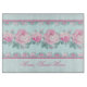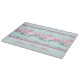 Personalized shabby chic glass cutting board with pink roses on aqua blue background. Add your name, text, etc to this custom cutting board to make a unique gift.