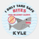 I only take safe bites, egg Allergy Alert stickers. Shark design with no egg symbol allergy alert stickers. Personalize with name or other text. Great for use at school or daycare to help alert others of a food allergy. Attach to backpacks or medical bags to alert that epinephrine is inside the bag. Stick on to lunch boxes or book bags. Great for kids to wear! Customize with text of your choice. Designs by Lil Allergy Advocates www.lilallergyadvocates.com