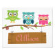 A personalized sign for children, with cute cartoon owls, could by used for a door sign or on the wall. Can also serve as a nice gift. Change name, colour, font of name according to preferance.