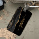 Personalize this elegant modern design with your name in vertical gold-coloured signature handwriting script on a black background with a border of black watercolor agate trimmed with gold faux glitter. (To keep the swashes at the beginning and end of the name, replace only the letters, leaving the symbols in place.)