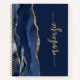 Personalize this elegant modern design with your name in vertical gold-coloured signature handwriting script on a navy blue background with a border of navy blue watercolor agate trimmed with gold faux glitter. (To keep the swashes at the beginning and end of the name, replace only the letters, leaving the symbols in place.)