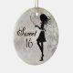 Personalized Silhouette Girl and Hearts Sweet 16 Ceramic Ornament