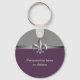Personalized Silver Eggplant Fleur de Lis Keychain