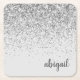 Personalized Silver Girly Glitter Sparkle Modern Square Paper Coaster
