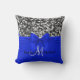 Personalized Silver Glitter Elegant Blue Bow Throw Pillow
