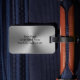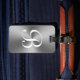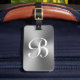 Personalized silver metallic travel luggage tag. Elegant baggage labels for suitcase, carry on or duffle bag. Custom monogram template with shiny grey background texture. Classy reversible design for men and women. Create a unique Birthday gift for him and her. Also great for honeymoon couple. Also available with business card slot.