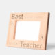 The clean design features the phrase "Best Teacher Ever" with three customizable text fields for a name or personal touch. The laser-etched natural wood picture frame is a meaningful gift and a treasured keepsake for the teacher in your life.