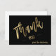Create a personalized and splendid, chic, minimalist, and simple thank you flat card for your upcoming wedding. This thank you flat card features spacious and beautiful calligraphy script writing in faux gold foil lettering with a chalkboard black background. You can easily customize it with your own text and customize it to your liking. Please note: The "Thank -You-" artwork cannot be edited. Additional Note: The gold foil print is a faux gold foil effect. It is NOT the actual hot stamping gold foil.