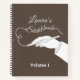 Customizable brown and white design with a hand writing out the word "Sketchbook".