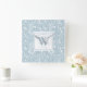 Keep time with this beautiful slate blue and white floral clock that can be easily customized with your family name.