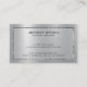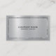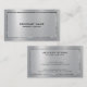 Personalized, slick metallic silver-grey texture print background, stainless steel with shiny silver-toned border accents, business card template. Customizable black typography.