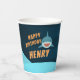 Designed to match our Shark Bait birthday party invitations and accessories, these adorable ocean themed paper cups feature a cute smiling shark on an ocean background with "Happy Birthday [Name]" in orange lettering.
