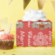 Red and White Personalized with your family name Snowflake Garland Pine Cone Christmas Wrapping Paper