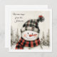 Send warm winter wishes with this adorable personalized Christmas card featuring a cozy snowman in rustic plaid hat and scarf. Soft watercolor trees, gentle snow, and hand-painted textures create a charming farmhouse-style holiday look.