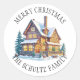 Personalized Snowy Log Cabin Christmas Classic Round Sticker