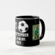 Personalized Soccer kids Mug. Soccer photo collage. This Soccer Team Photo Collage is perfect for remembering that special day for Kids, they will love it! Add 2 different photos and customize the player name, team name, year, and player number. Customize your mug now!