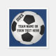 Personalized, Soccer Paper Napkins in your Colours and with 2 text box templates for Your Team Name, Year or YOUR TEXT or Delete. I can create matching and coordinating custom soccer party supplies in yiur team colours. Call Linda for help or changes: 239-949-9090.