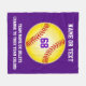 Personalized Softball Team Gifts. Softball Fleece Blanket with Your Text and in Your Team Colours. CALL Designer Linda, to CHANGE the colours or to assist you in changing the purple and white softball blanket colours to ANY COLOR combination. The softball is a photograph of the Hawaiian Sun enhanced by Little Linda Pinda. Very cool glowing softball fleece blanket are perfect gifts for softball seniors at your end of season senior night softball party.