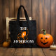 This Tote bag is perfect for the family who loves Halloween. It features a fun and festive design with a spider web and a personalized name
